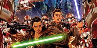 Remember that timing I mentioned? Caleb’s just beginning to really feel like he found his place when Commander Gray, one of the troopers gets a message-initiate Order 66. Star Wars fans know that this was the order that told the troopers to turn on the Jedi and wipe them out. Bad things are coming next issue.