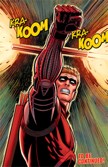 Furthermore, a much more glaring inconsistency is Roy’s usage of a bow. Yes, he has always primarily been a bowman, but it was made very clear in the Rise of Arsenal mini-series after he lost his arm that Roy could no longer use a bow because he could not feel the draw with his mechanical replacement, which resulted in his arrows either falling short, or massively over shooting his target, and ultimately resulted in him snapping his bow in half. And yet here he is, mechanical arm and all, running with his bow. Now, I suppose the argument could be made that he has spent at least a year sober by this point, which could have potentially given him enough time to calmly practice, and relearn how to sense the draw, but given the lack of mention whilst he goes over other things he did during the year just makes that seem unlikely to me. Sadly, this feels much more like an oversight on the part of the writer and/or illustrator, and its made all the more awkward by the fact that he only uses it briefly before putting it aside to utilize his arm canon, instead. Which, another thing… he didn’t even have an arm canon in the comics originally. That was an addition given to him in the Young Justice cartoon, but I digress.