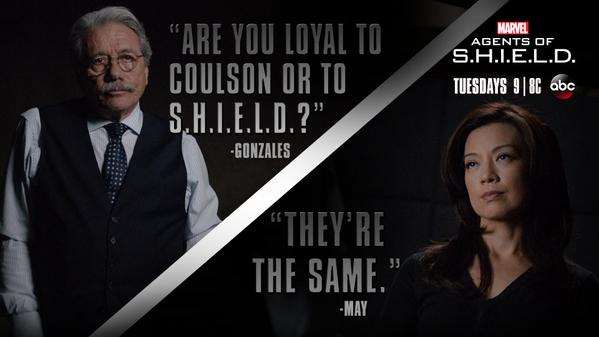 Gonzales tries his next trick– trying to get May to join him. Gonzales asks if she’s loyal to SHIELD or to Coulson, and she witheringly says, “They’re the same.” Gonzales keeps trying to recruit her, and she remains loyal to Coulson, although she does seem be considering his offer.