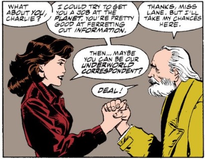 Superman makes relatively short work of the dim-witted Underworlders as he steals a grenade from one of the monsters who didn’t know what to do with it, and shoved it down another monster’s mouth – which is, frankly, pretty damn awesome. They try using their war machines, but they are taking on Superman, so you can pretty much guess that these aren’t going to work. Superman finds Lois with Charlie. Charlie nearly becomes a recipient of a super knuckle sandwich (talk about your free meals!) until Lois intervenes and explains he was the one who tried to leave a note for Superman to come to the tunnels and he’s been working in the anti-war circles of Underworld this whole time. Lois offers Charlie a chance to be the Daily Planet’s Underworld Correspondent and everything is neatly tied up, a job well done.