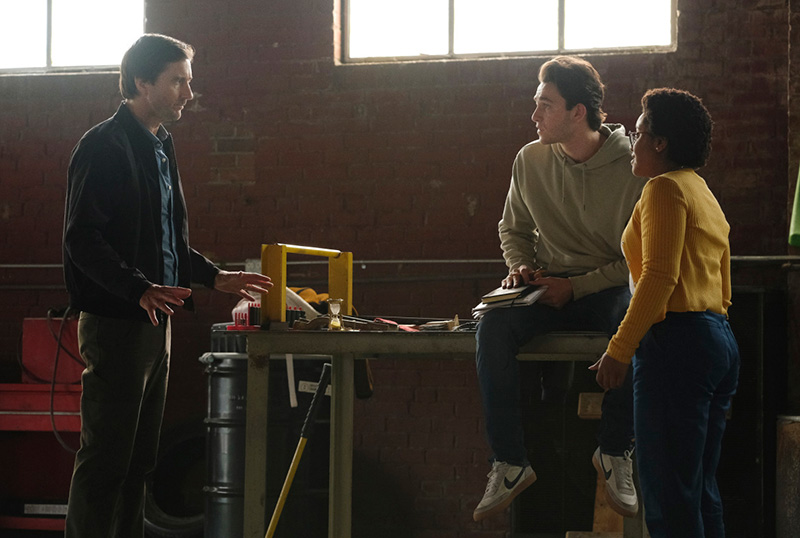 Back home, Pat settles Justin on the couch, Barbara worries, and Pat reassures her about Courtney. Barbara continues to be an amazingly impressive woman, worrying about Justin even in the middle of the chaos blowing up in her life. Sam finally reveals why he’s really there, and he’s just as slimy as I thought he’d be. You can practically see Courtney’s heart break, and she has one of her first real father/daughter moments with Pat afterwards, which Barbara sees, but we don’t get a good read on her reaction. After his very touching scene with Courtney, Pat goes after Sam for a quick chat and puts the man in his place, and also shows some sign of the hero he used to be. Crushed, Courtney goes back to the basement lair, and we see both another impressive scene from Barbara and more bad news from Courtney. The kid is having a bad day.