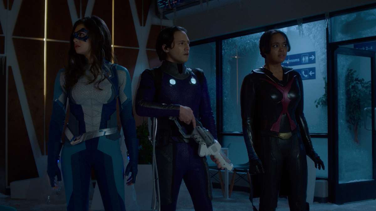 The episode winds down with Wise Conversation on the Balcony, a staple of the show at one time. We haven’t seen it much lately, but then, we rarely see the Cat Grant Memorial Balcony anymore. In this case, it’s Alex and Lena who share drinks and concerns. Lena isn’t sure she should be with the heroes, and talks about her doubt during the earlier events. Alex reassures her that she had them, too, and talks about drawing on her training as a soldier to get through it. Did I miss something? When was Alex a soldier? She was a DEO agent for a long time, and did a lot of college and, I think, med school. When the heck was she in the army? Government agent and soldier are not the same thing. They end up bonding over shared experience and Scotch. There are worse bases for a relationship, I guess. Inside, Brainy and Dreamer talk about their mutual feelings of despair in the face of their lack of progress in rescuing Supergirl. J’Onn and M’Gann get a cute few moments together. Then, based on an incident that sounds important but we’ve never heard of before, we get the premise for next episode as they borrow a bit from Huey Lewis because they have to go Back In Time!