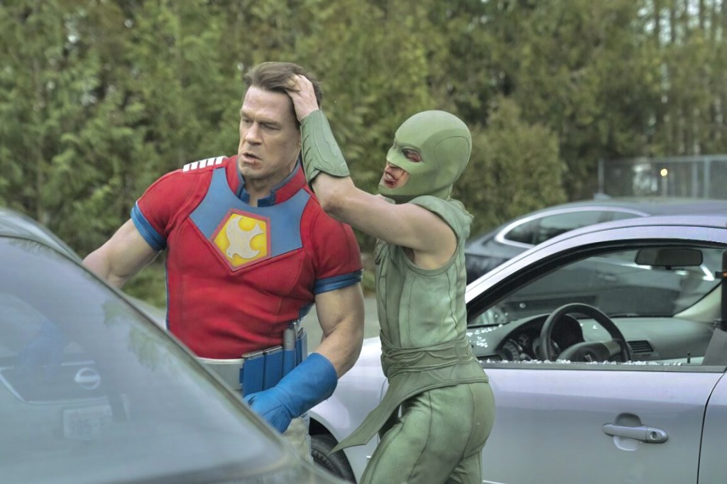 Determined to try and salvage something from this mess, Adebayo goes to meet Peacemaker and Vigilante as they get to the facility where Augie (Peacemaker’s dad) is being held. She does her best to deter him, and makes a reasonable case, but he insists on going inside anyway. Adebayo, understandably, doesn’t have much good to say about Augie Smith and possibly undermines a bit of her own case. After Peacemaker goes in, Adebayo has an absurd conversation with Vigilante, who is in civilian clothes at this point, while Peacemaker resolutely stays in uniform.