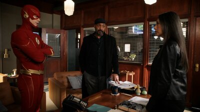 A random citizen serves as the proverbial red shirt while Deathstorm goes on a rampage, and we can tell things are going to get worse. Iris, Barry, and Sue (who has apparently come back) try to figure out how to get in touch with Deon. It’s not like the Still Force has a cell phone. Barry gets an emergency summons from Captain Kramer and, after some discussion, goes off to help her. While I get the budget and COVID concerns limit various opportunities, it seems a bit peculiar they are dealing with assorted time-related problems and no one even thinks to contact the Arrowverse’s resident time-travelers, the Legends. Or at least mention them.
